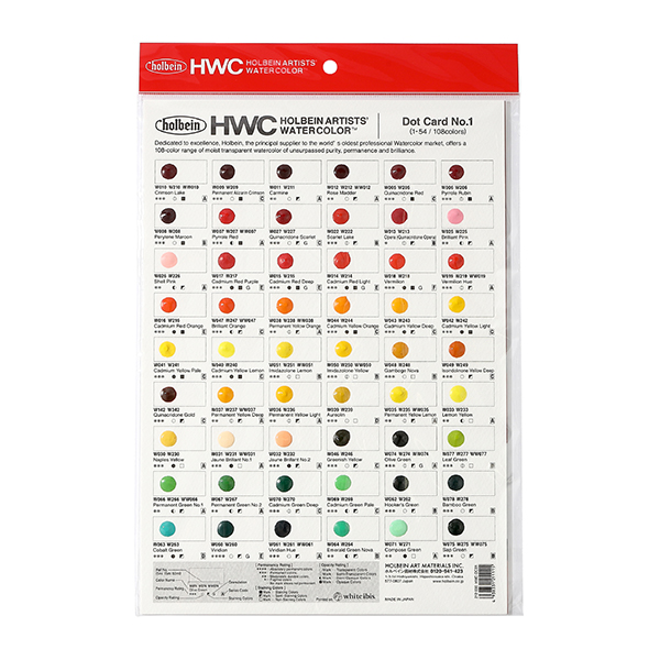 ホルベイン透明水彩絵具 108色 ドットカード DC01